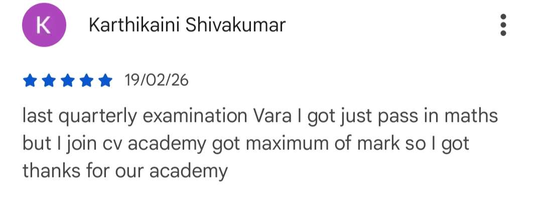 Experience interactive face-to-face classroom sessions at CV ACADEMY, led by Revathi Mam, a highly experienced Mathematics faculty with 10+ years of teaching expertise.